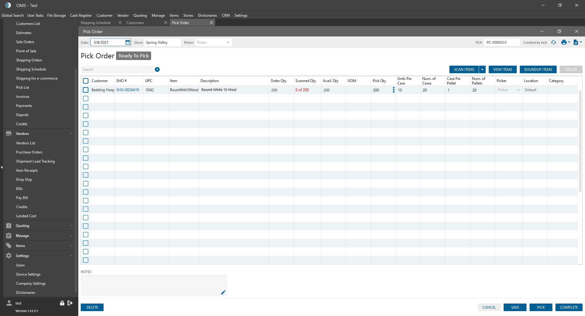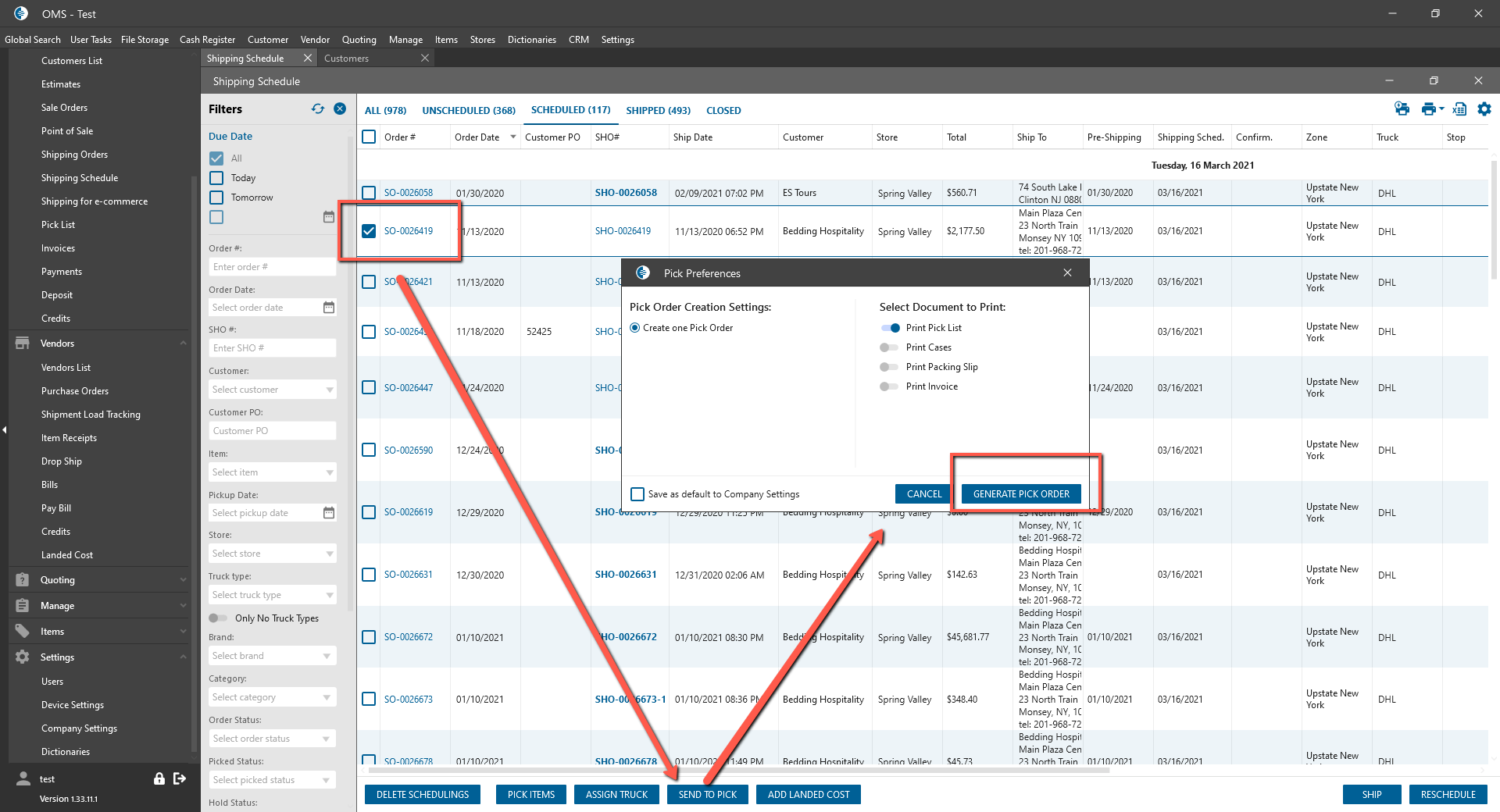 - Select Checkbox “Print Pick List” -> Generate Pick Order;