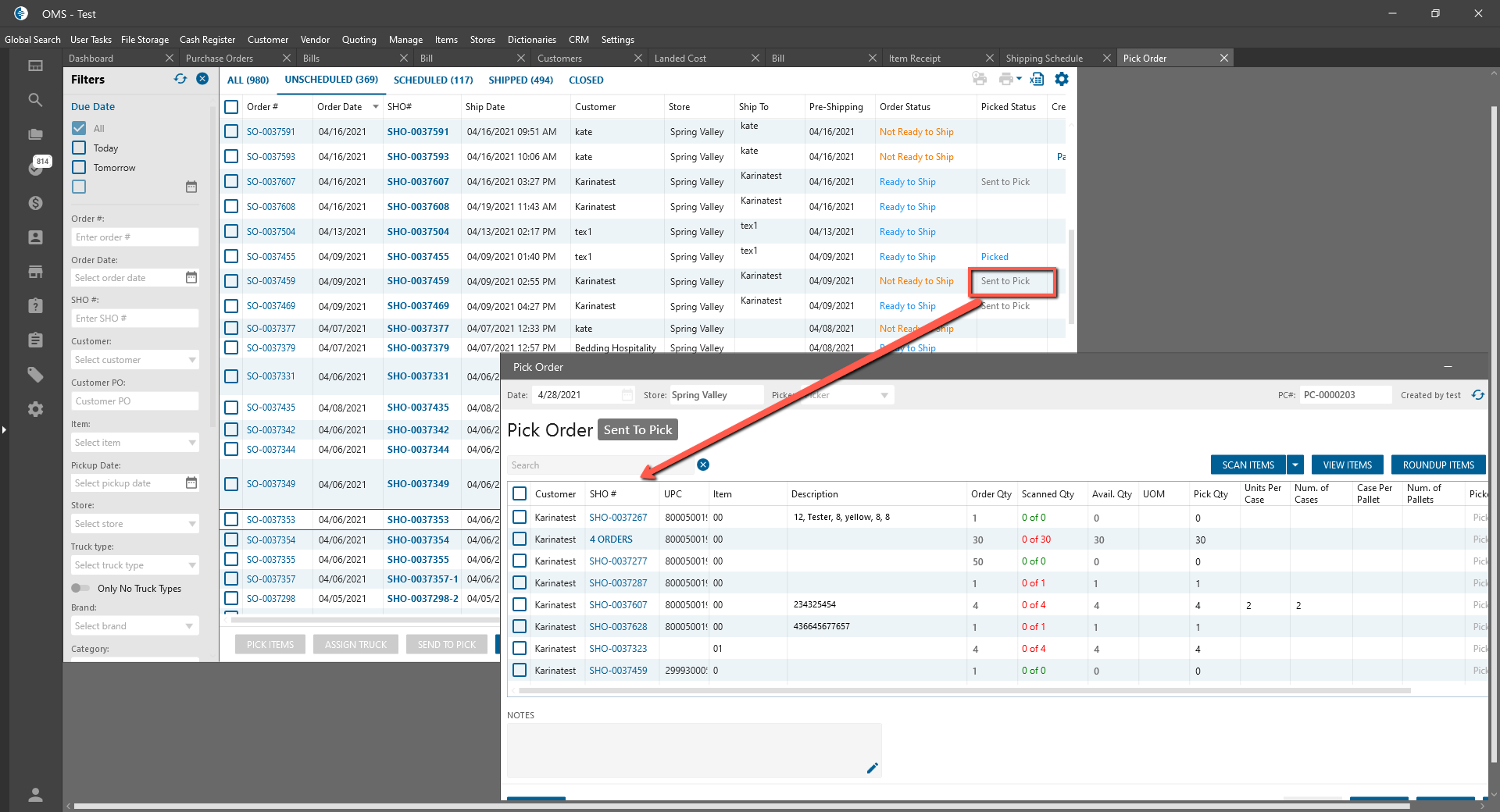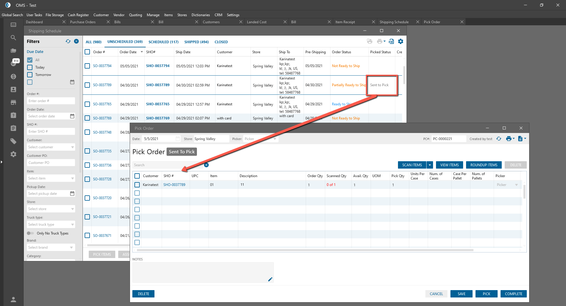 Ready to Pick status on the Shipping Schedule form was renamed to Send to Pick.