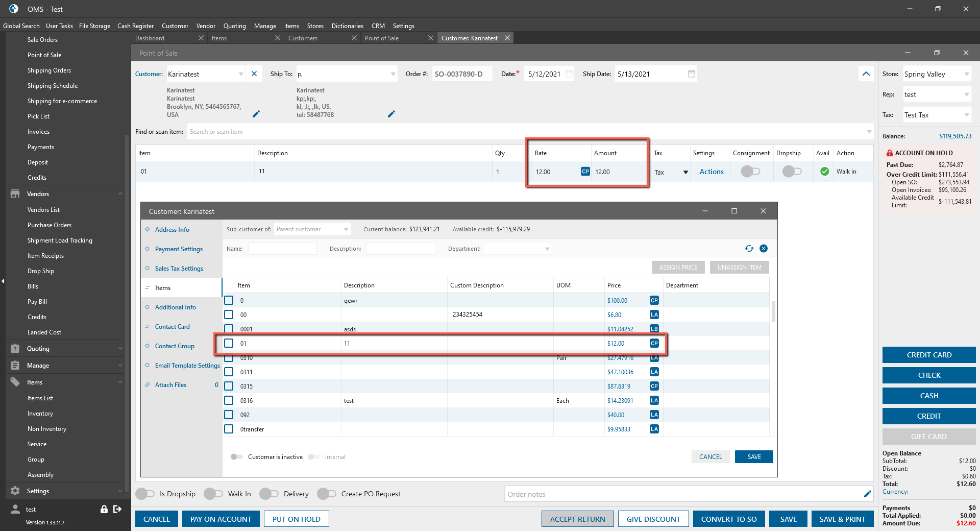 - Select item with customer price.