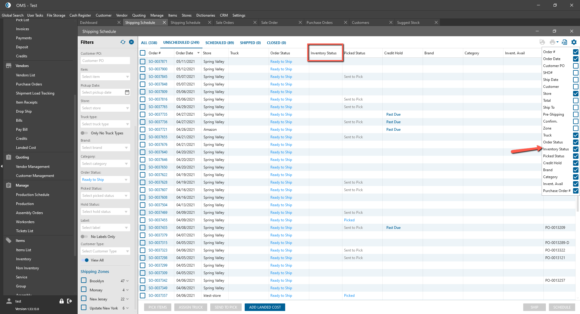 Also, the Inventory Status column was added to the column picker.