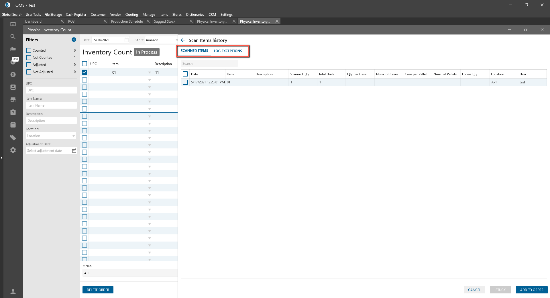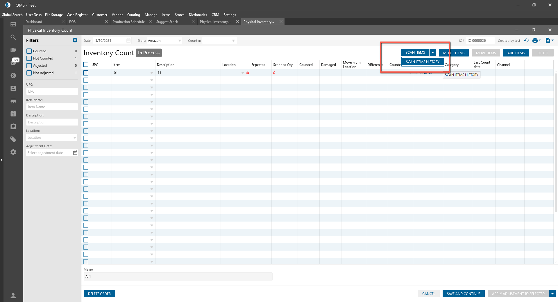 Scan Item multi-button was added to the Physical Inventory Count.