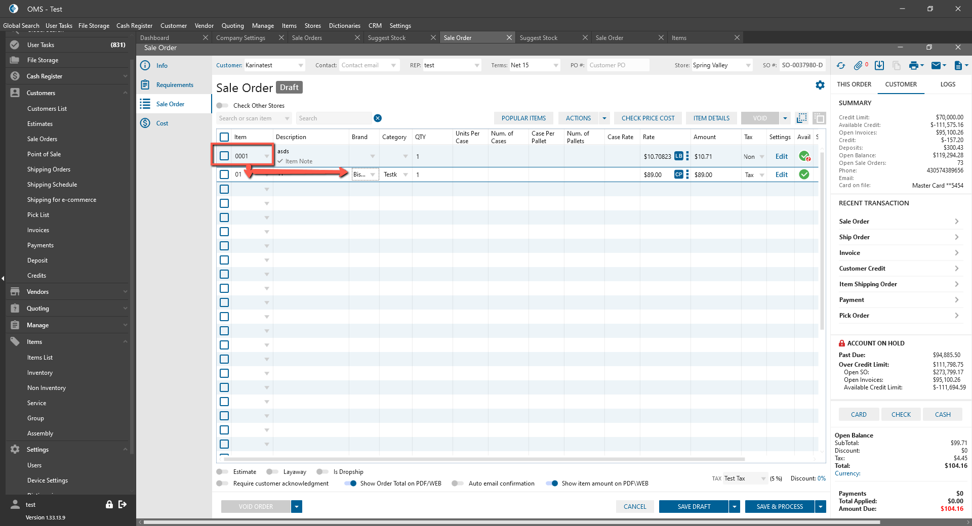 - The pop-up “Item already exists” isn’t appeared after moving from item column to description in SO. The focus is moved to the next textbox/field.