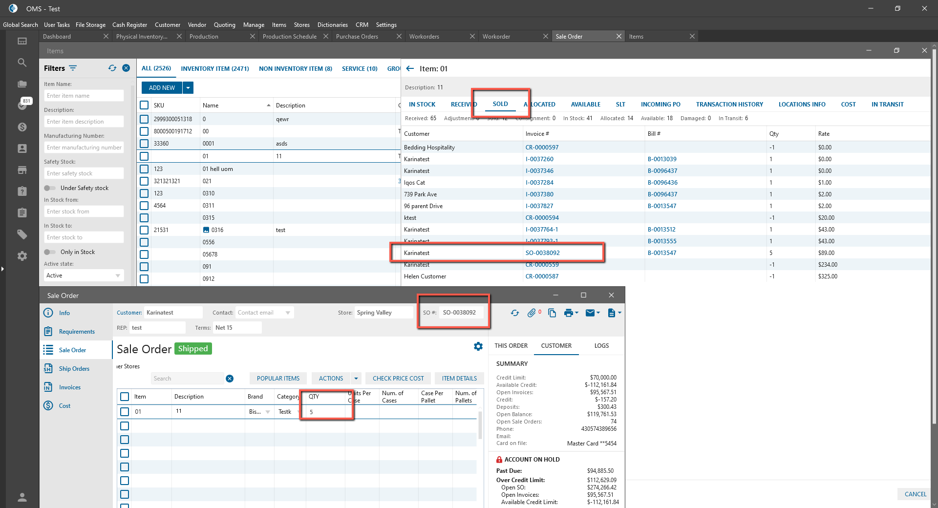 - Process SO -> Ship Ship Order;
