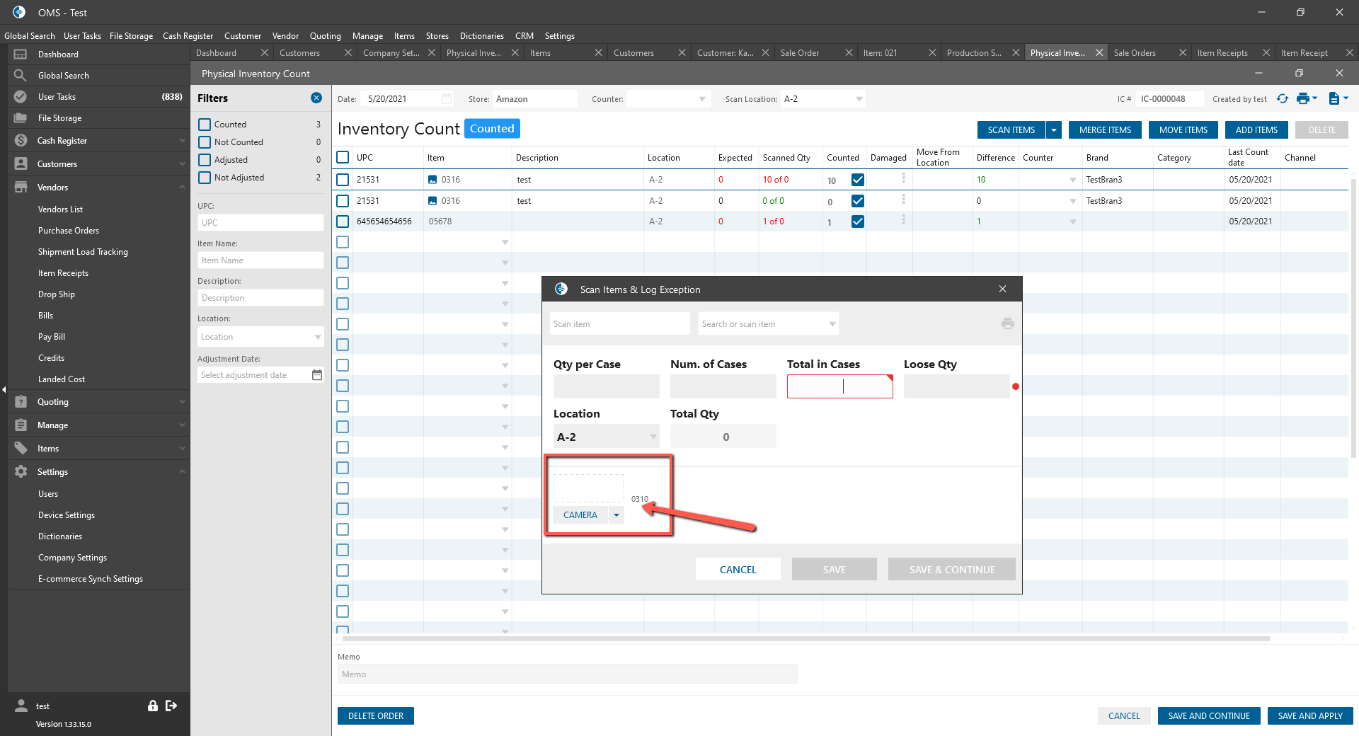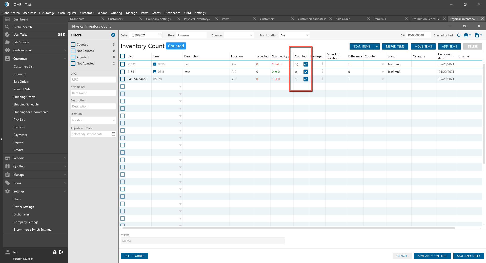 After clicking Add to Order on the scan log page -> Item is added to the Physical Inventory Count and Counted field is filled with the checkmark.