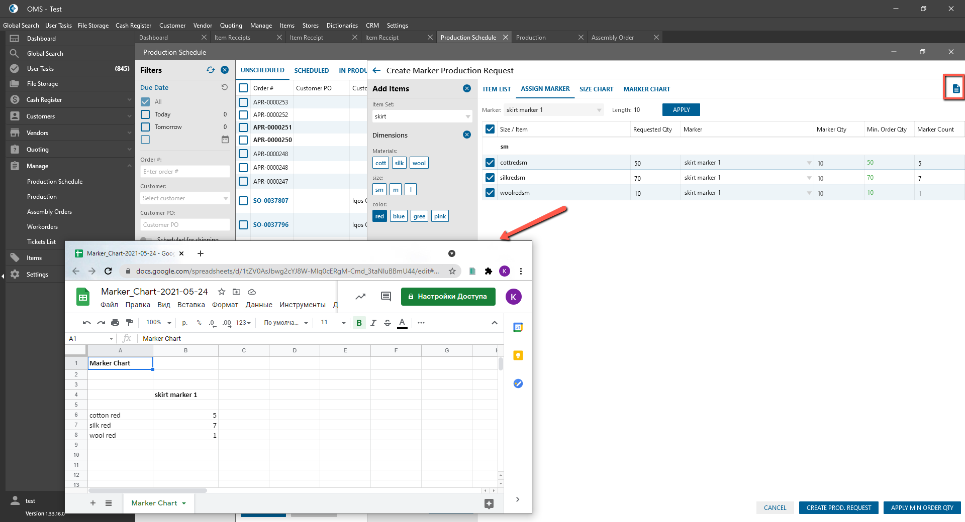 On Production Schedule and Production Screen user can print the excel of Marker Production Request.