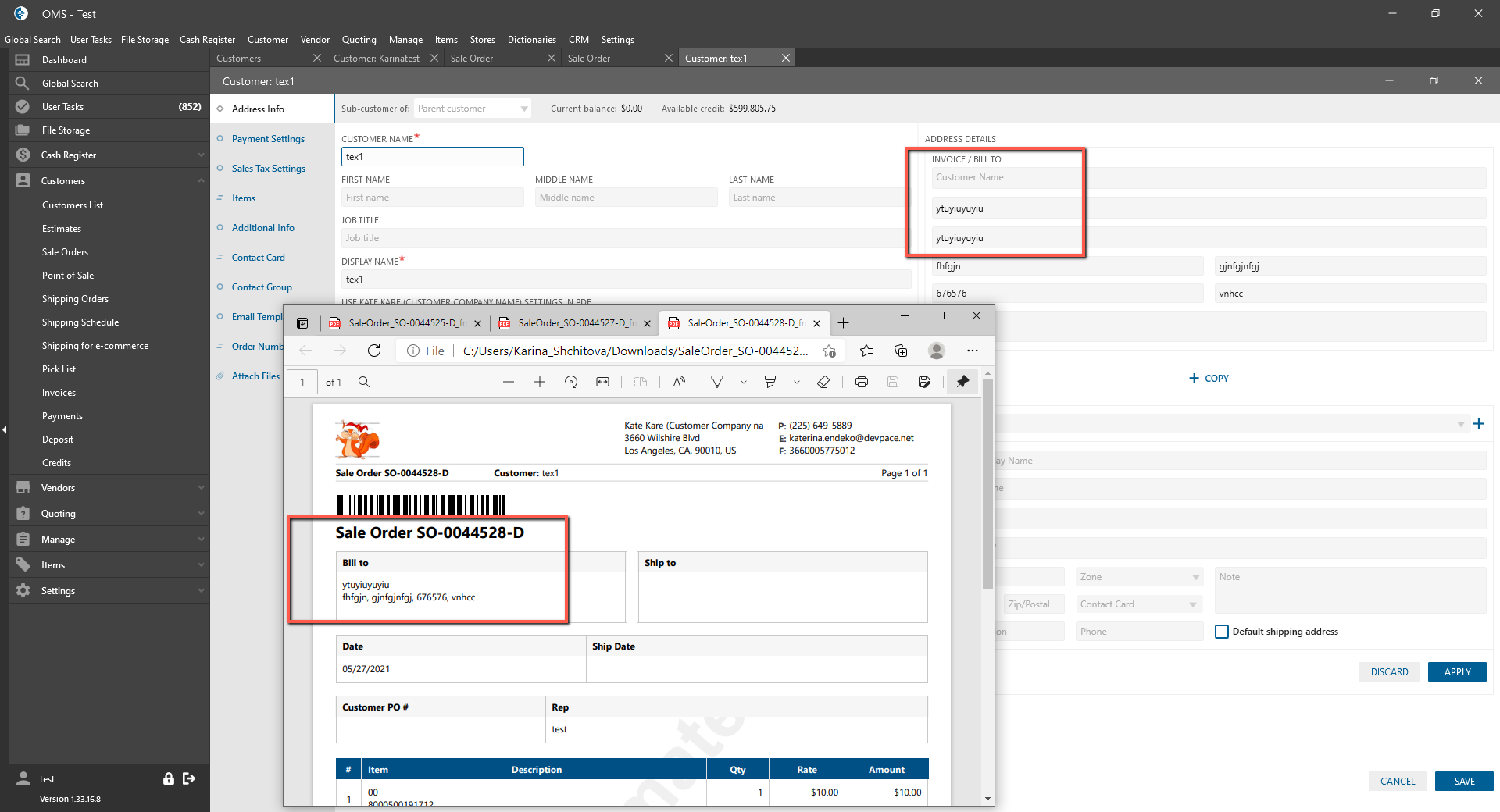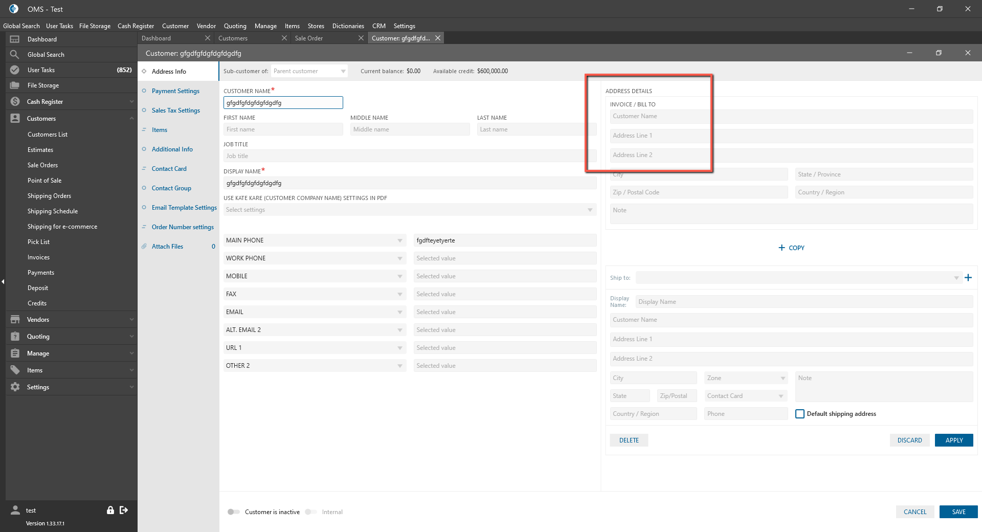 - By default when creating New Customer -> Brings in to Ship to the Customer Name which user can overwrite;