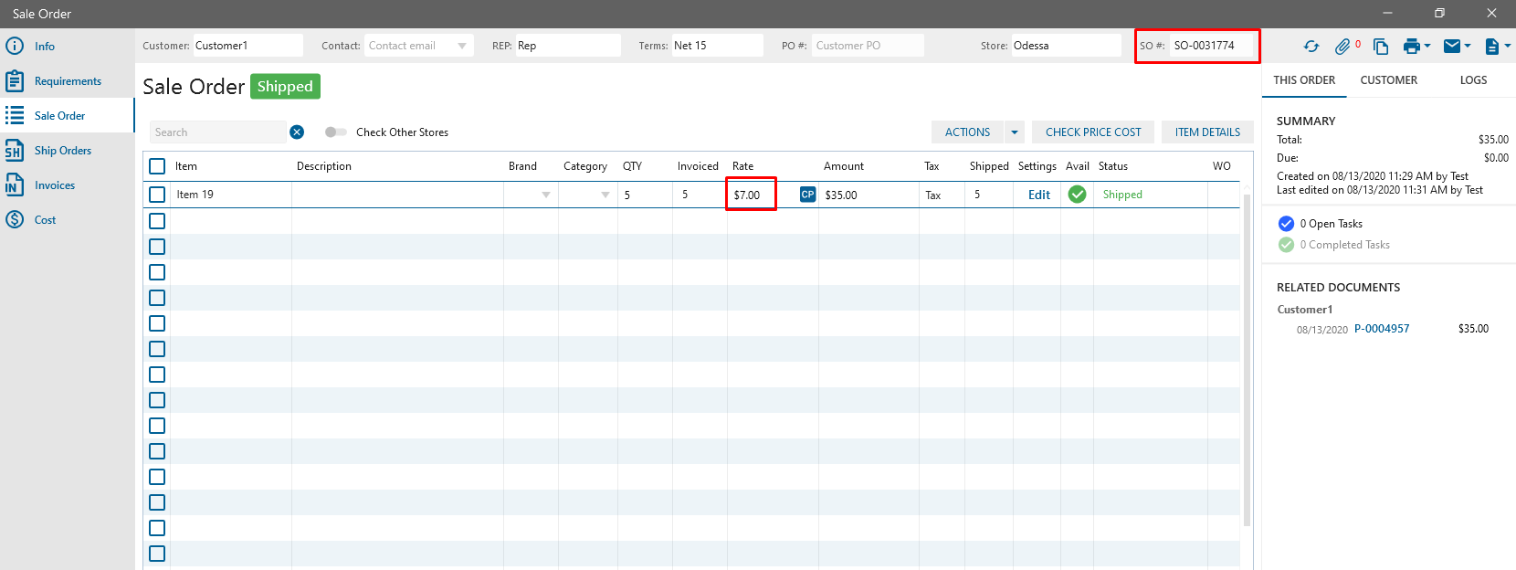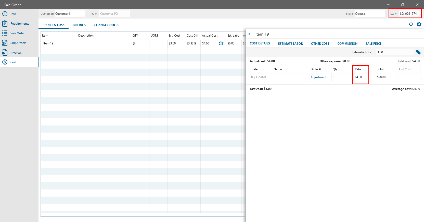 Expected result: Item Cost shouldn’t be changed according to SO after return and Customer Credit, including in the Inventory table.