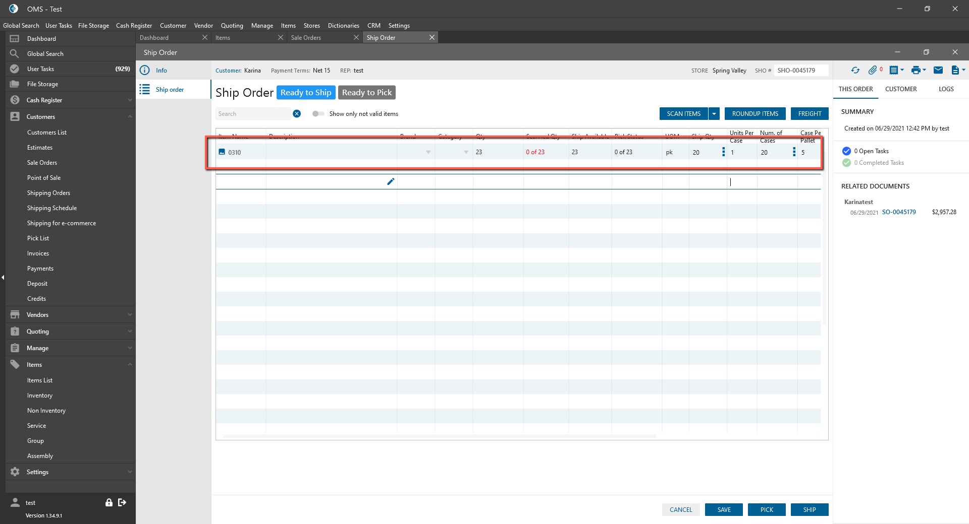 If for item with UOM on Item edit form is checked Cased checkbox -> On Ship Order Unit per Case/Num. of Cases columns are disabled and counted automatically.