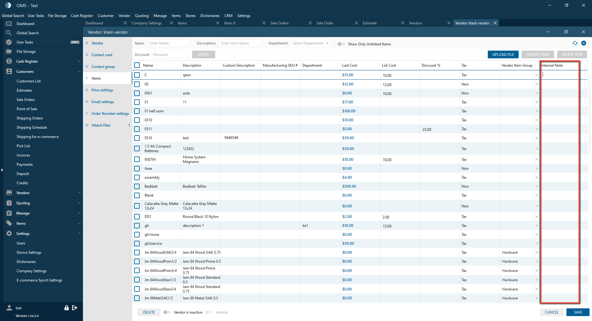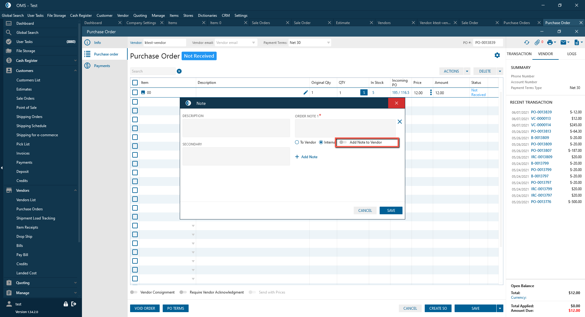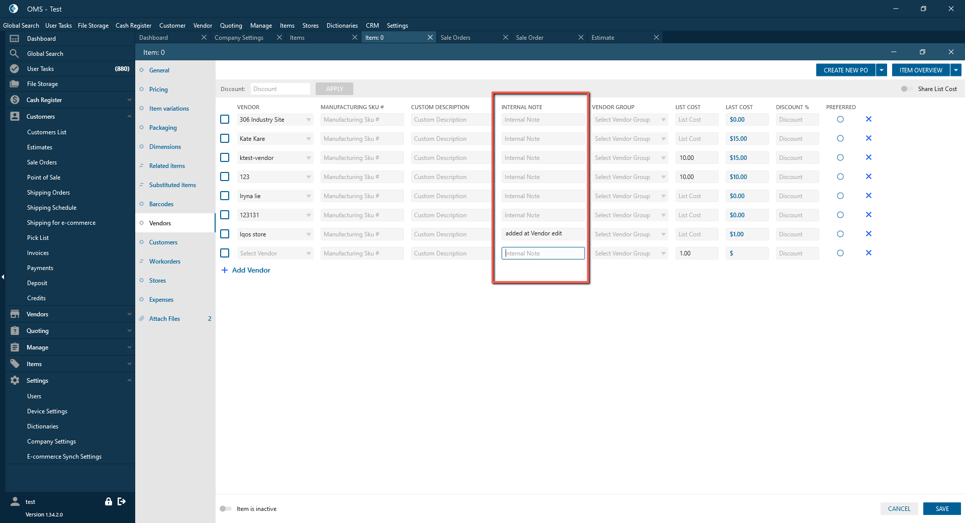 - If the checkbox is checked note is added to the Vendor and Item on the Item/Vendor edit forms.