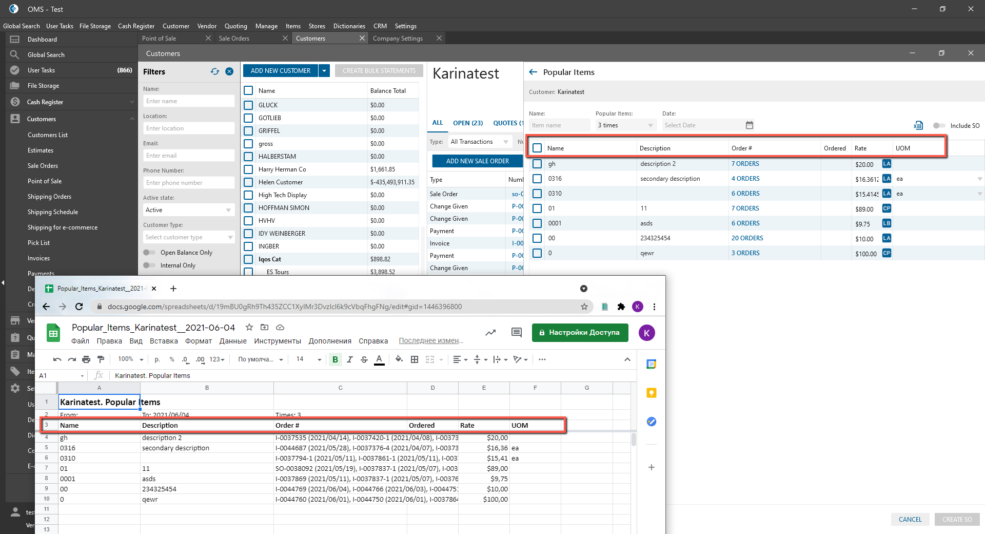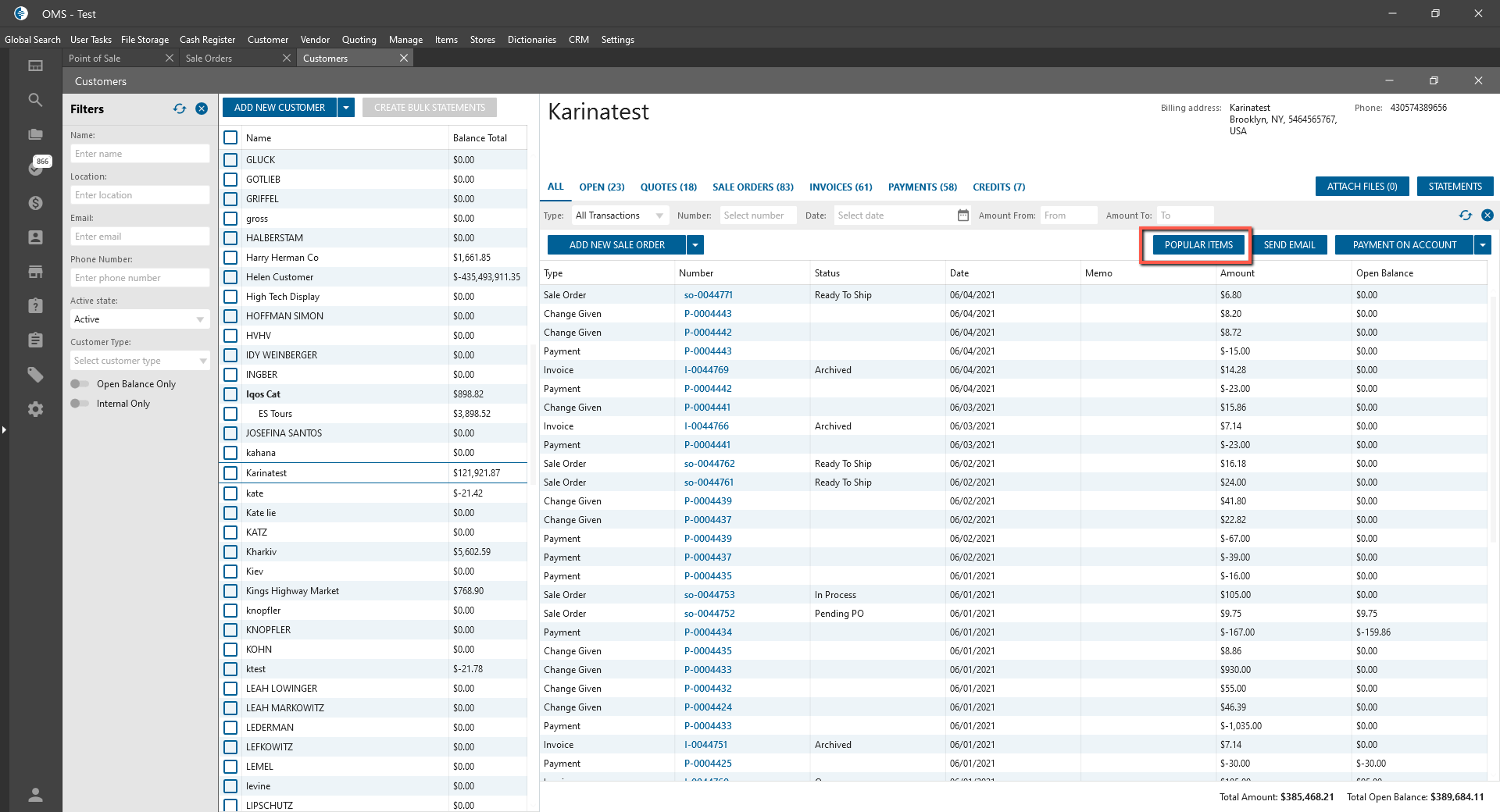 - was added at the bottom of the Popular Items panel on the Customer tab;