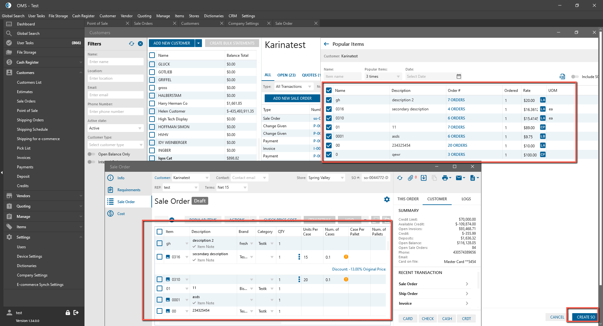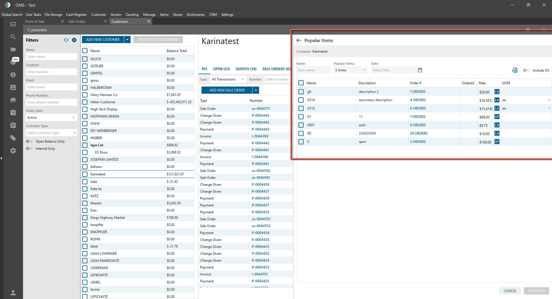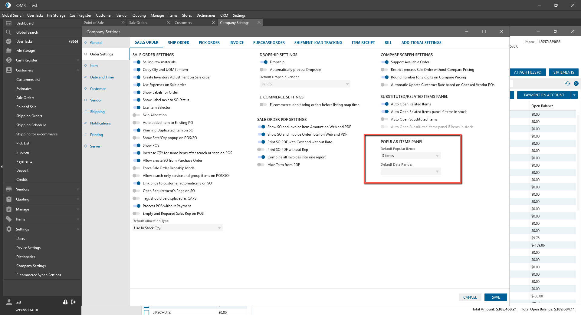 - Popular Items on the panel are depended on SO Order Company Settings;