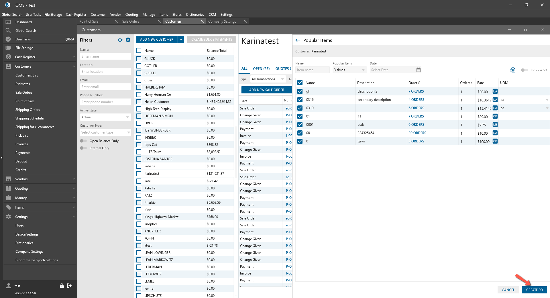 - Create SO button: