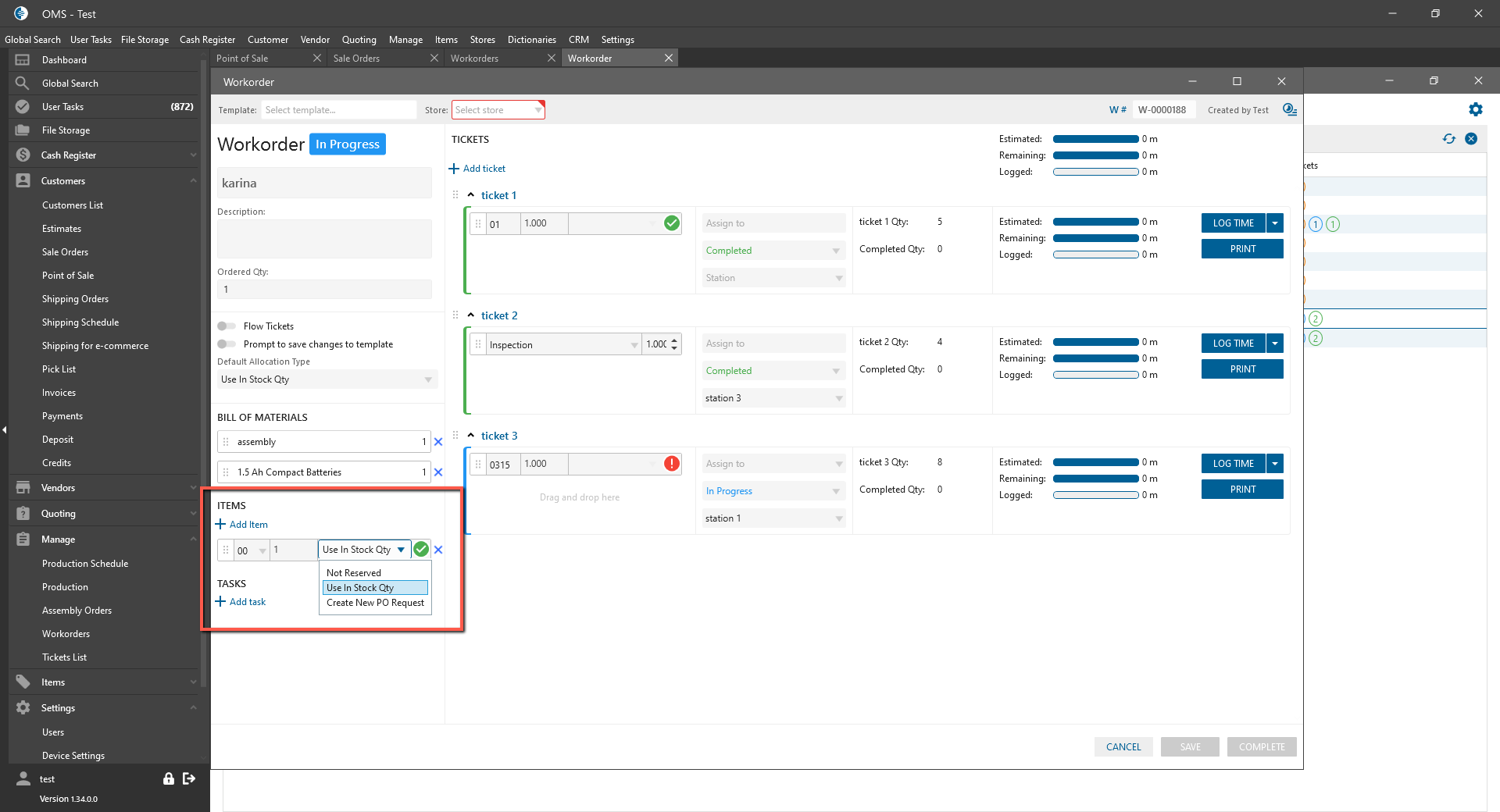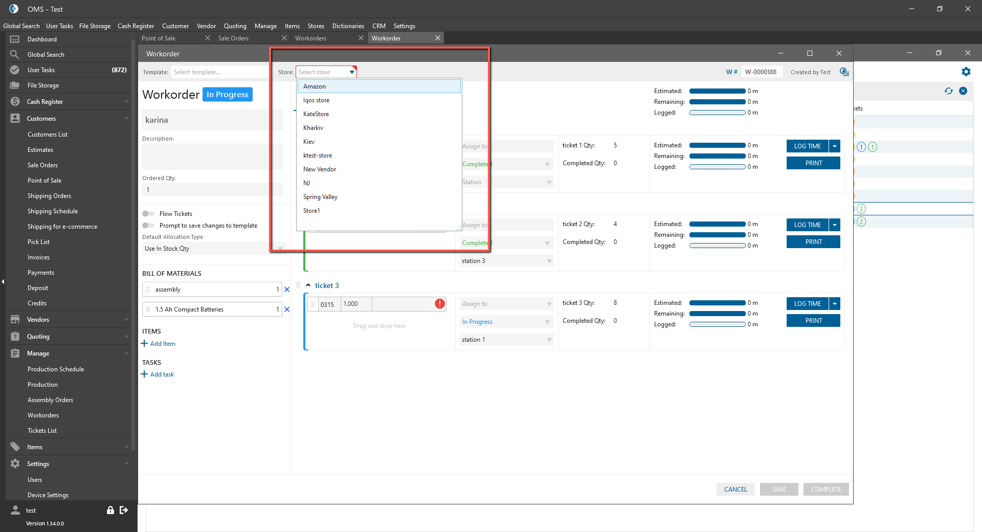 On In Process WorkOrder with the empty store was added the ability to enter store.