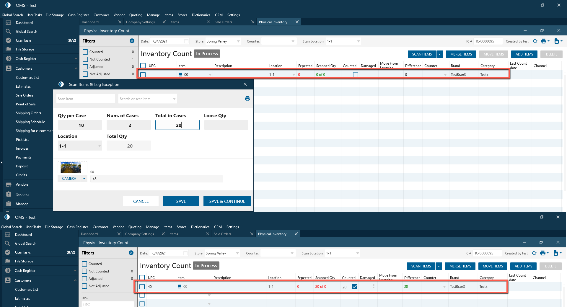 - Add item -> Click on the Scan Items button -> Scan the same item as in order.
