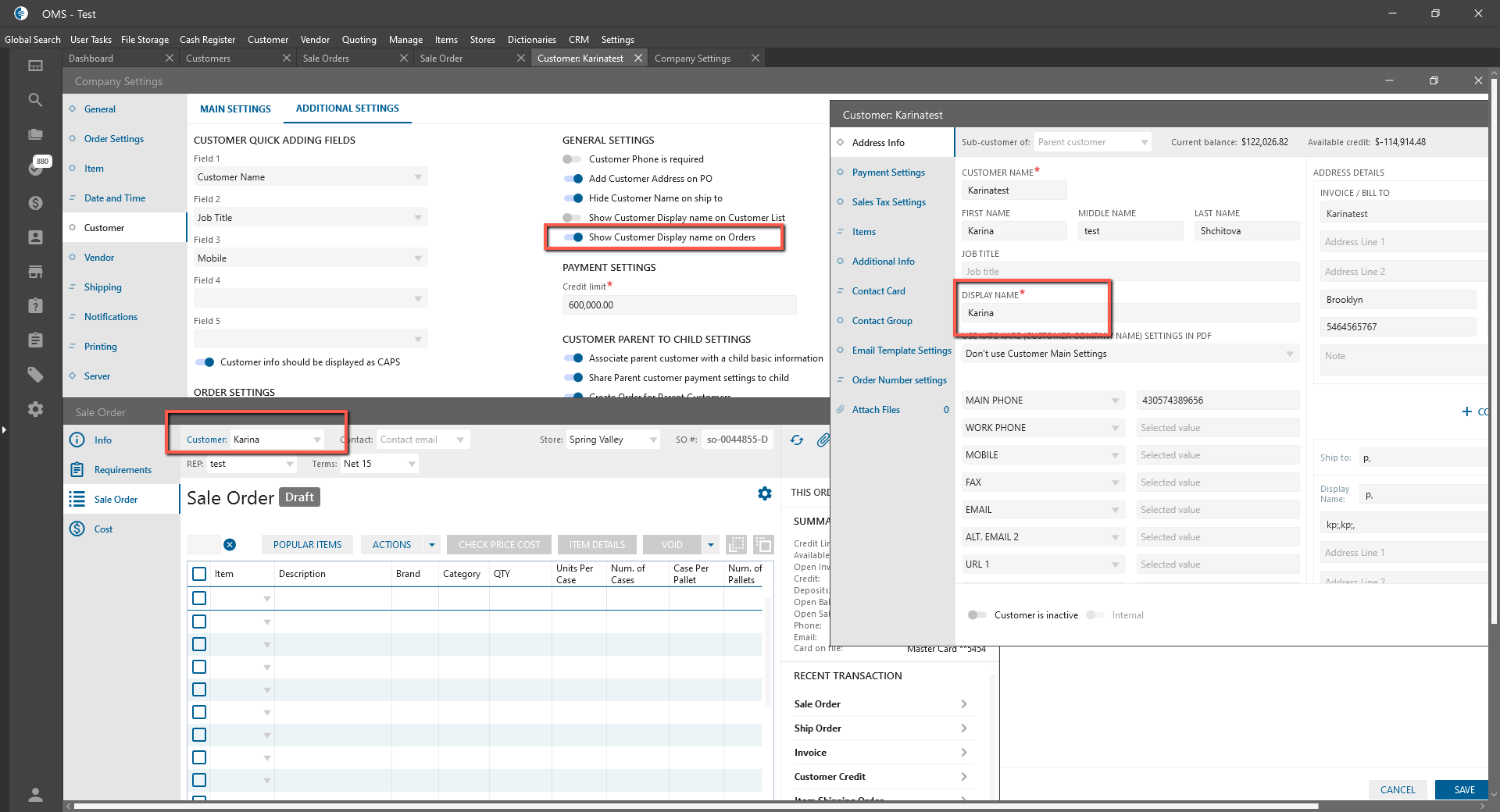 - “Show Customer Display name on Orders” checkbox: