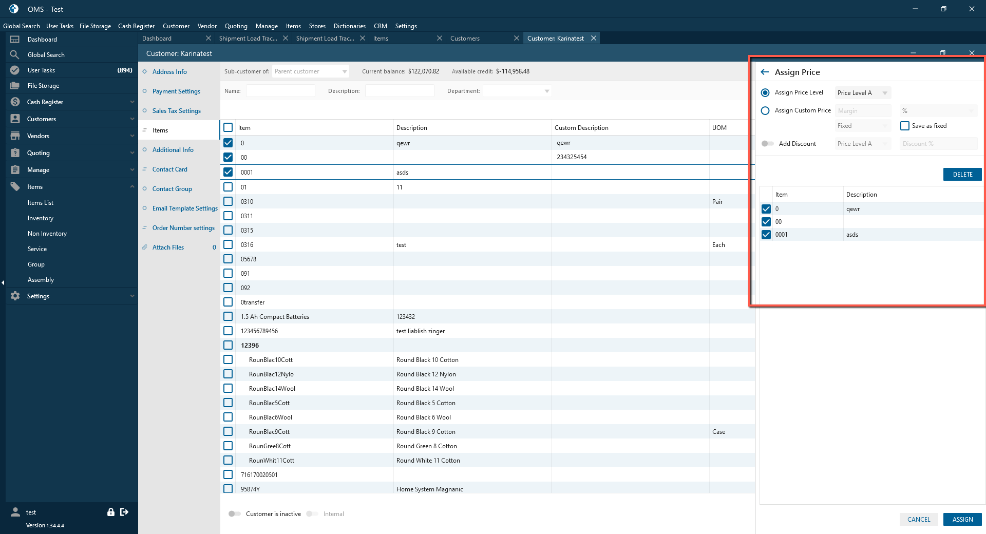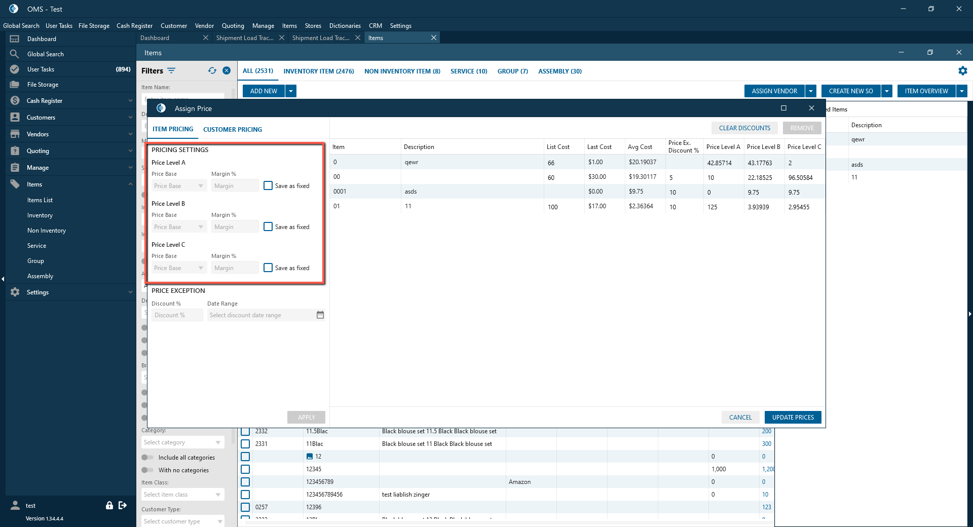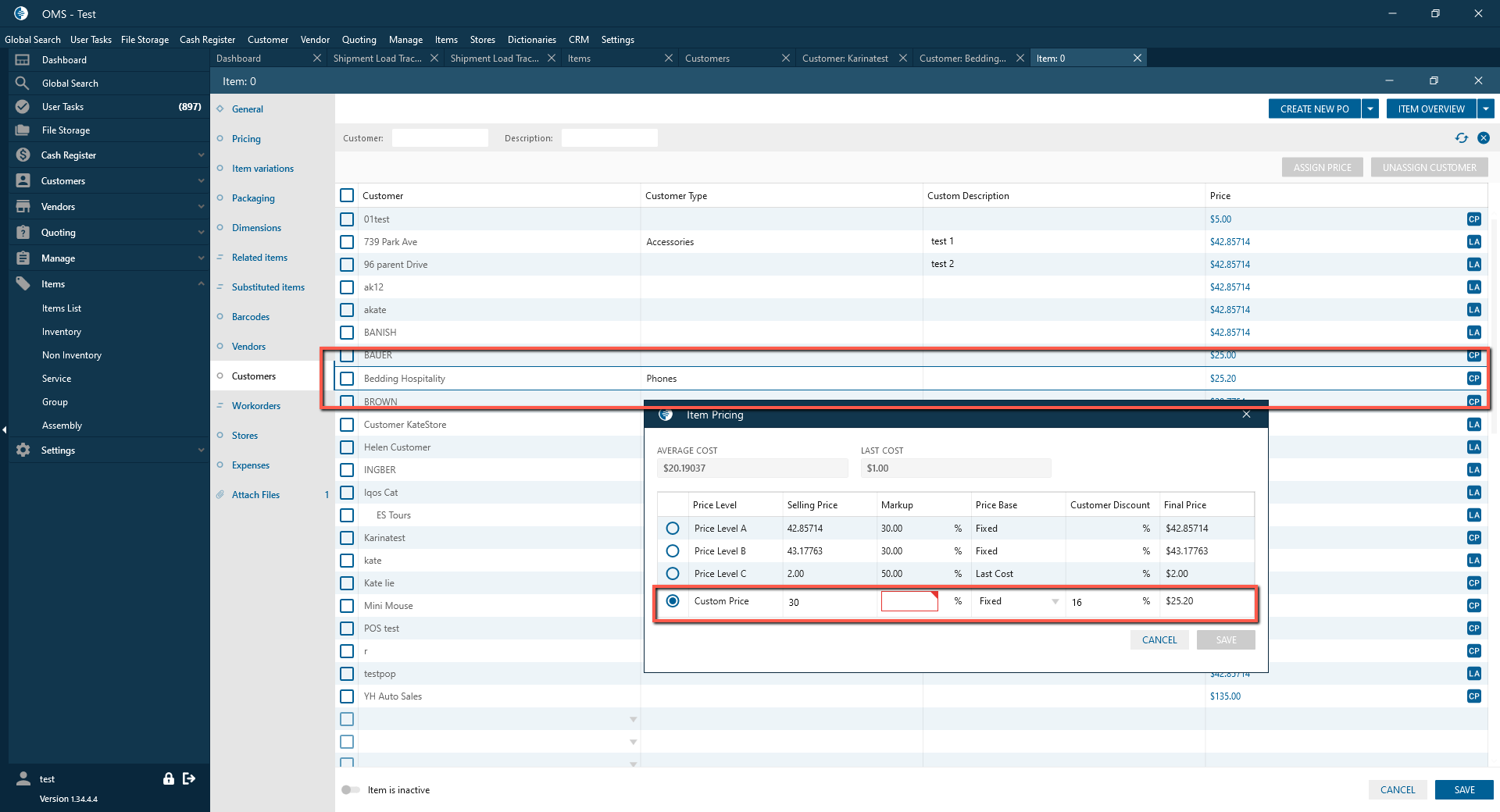 - Open customer edit form -> Items tab -> Observe Pricings;