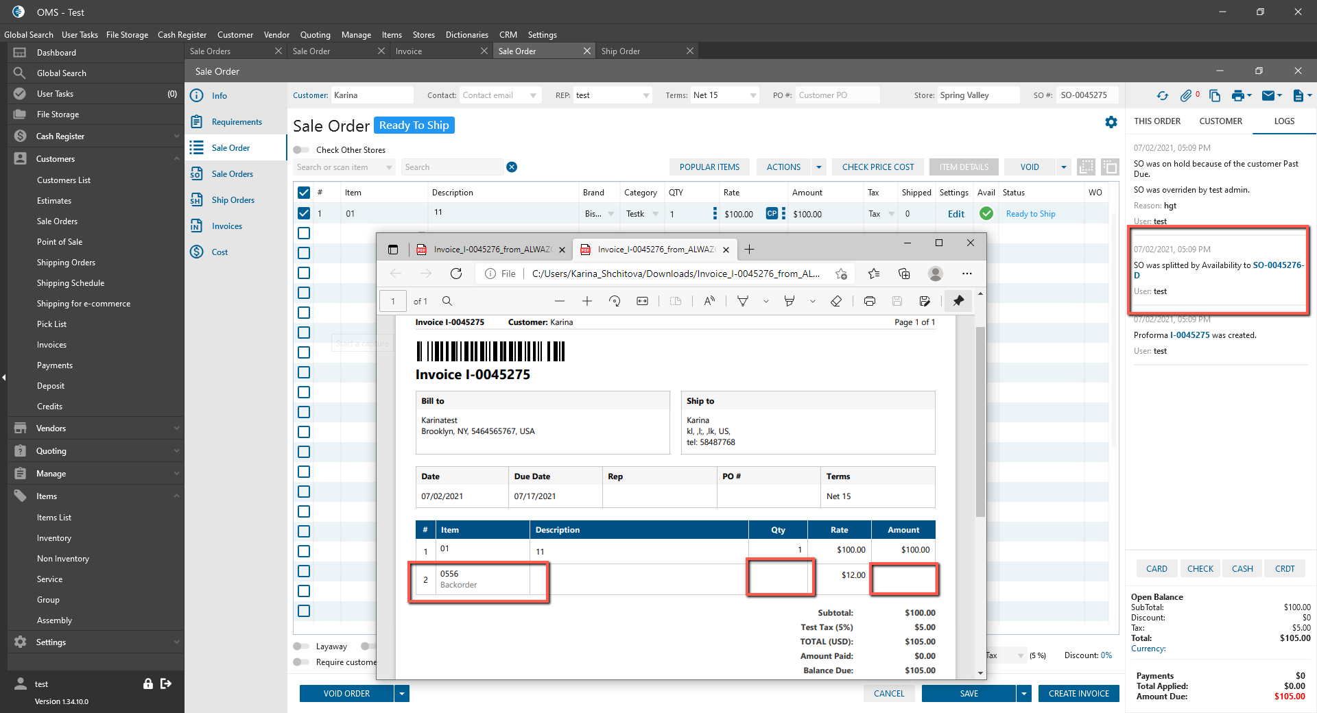 In the Invoice/Packing slip is shown another column “Inventory Status”: backorder and out of stock.