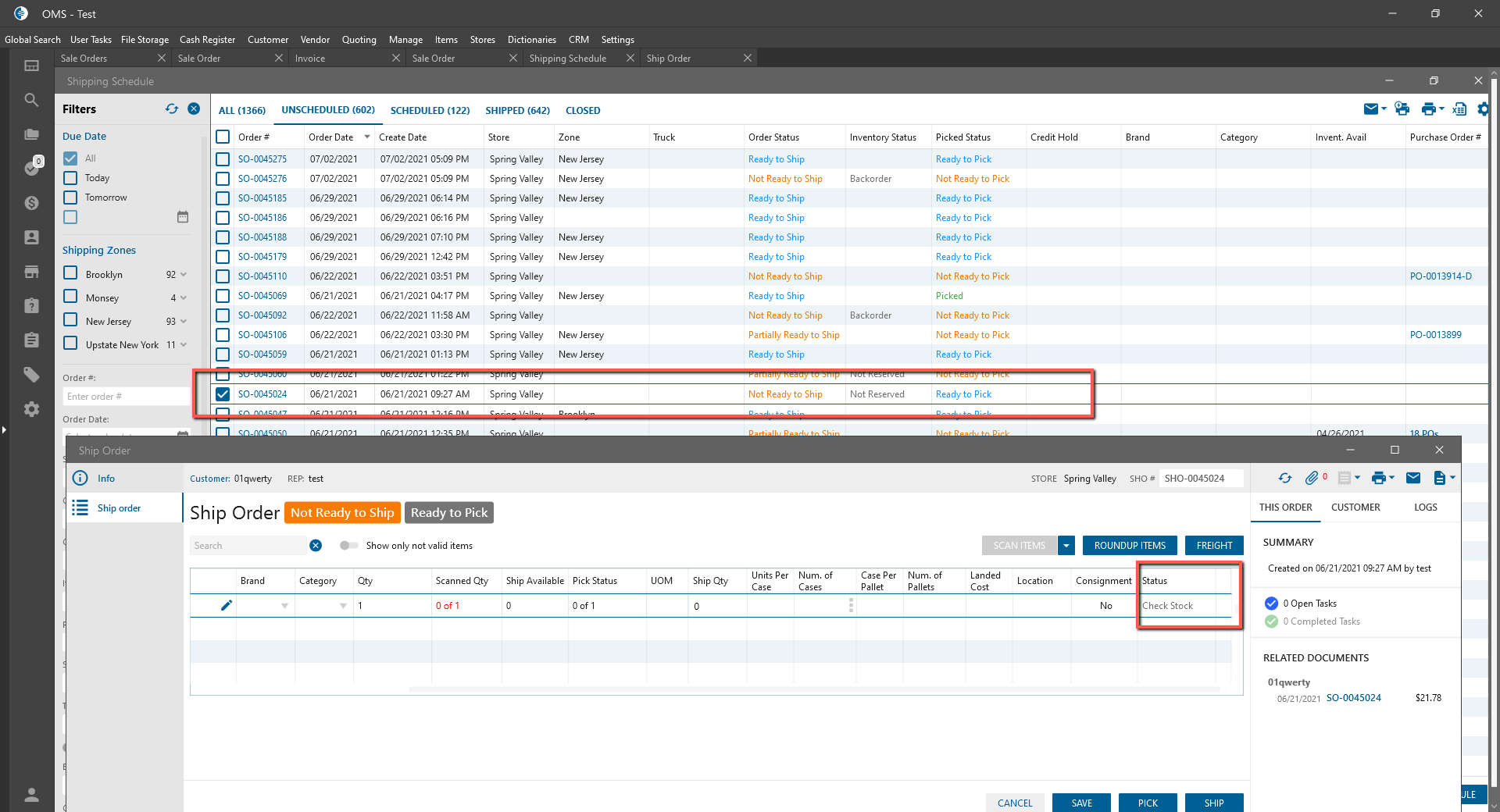 - Pick status is “Ready to Pick” if line item statuses are: Not Reserved, Check Stock, Ready to Ship;