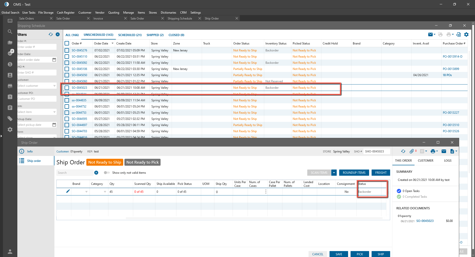 - Pick status is “Not Ready to Pick” if line item statuses are: Backorder and another;