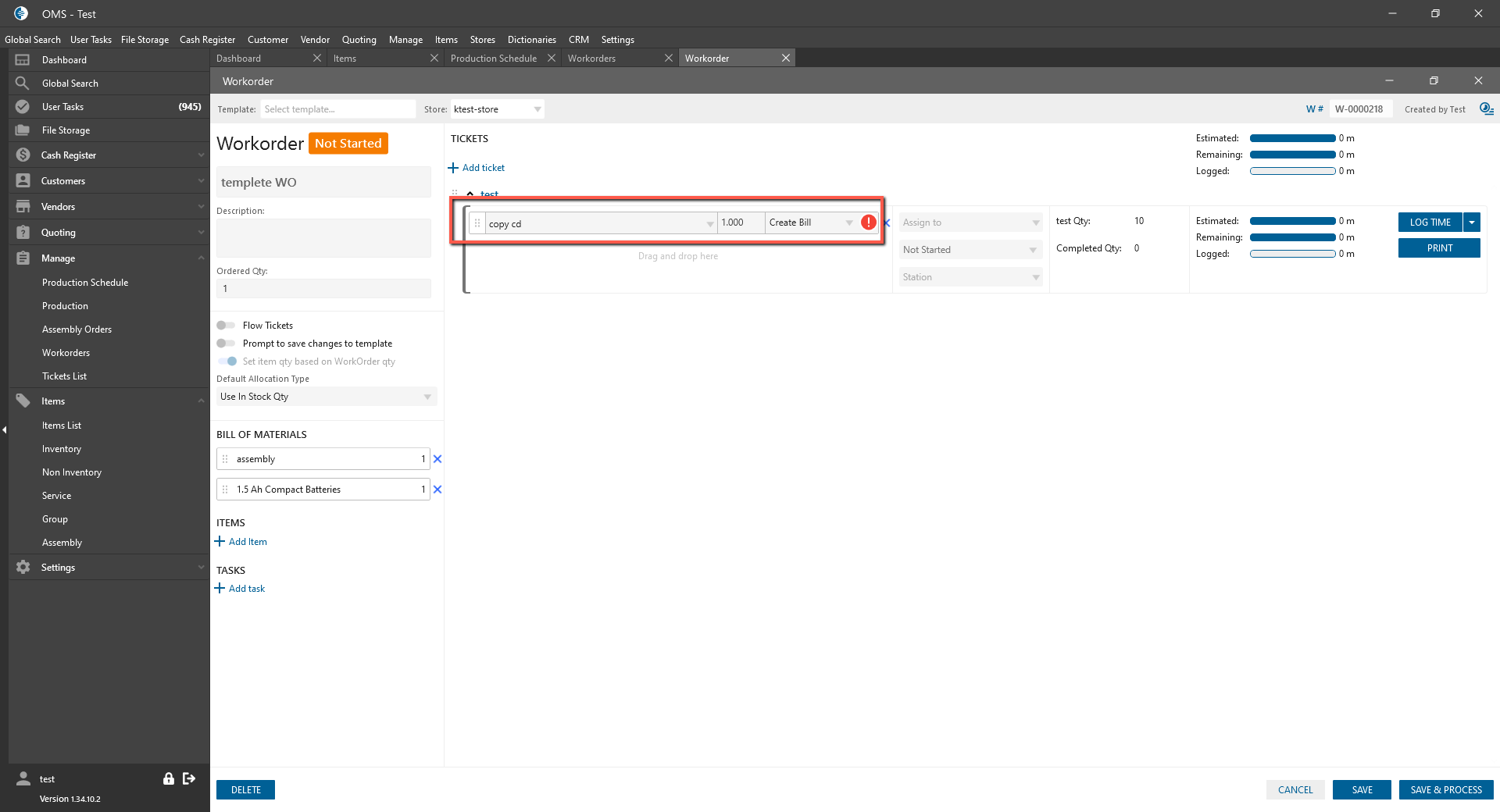 - Open WorkOrder list -> Select WorkOrder;