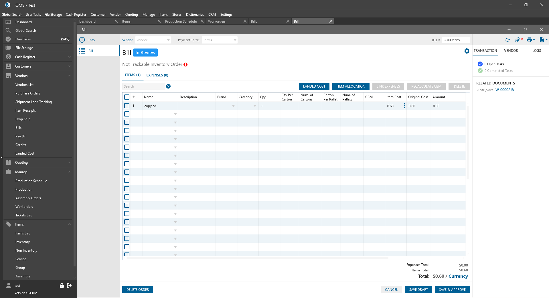 - Save -> Open In Review Bills tab.