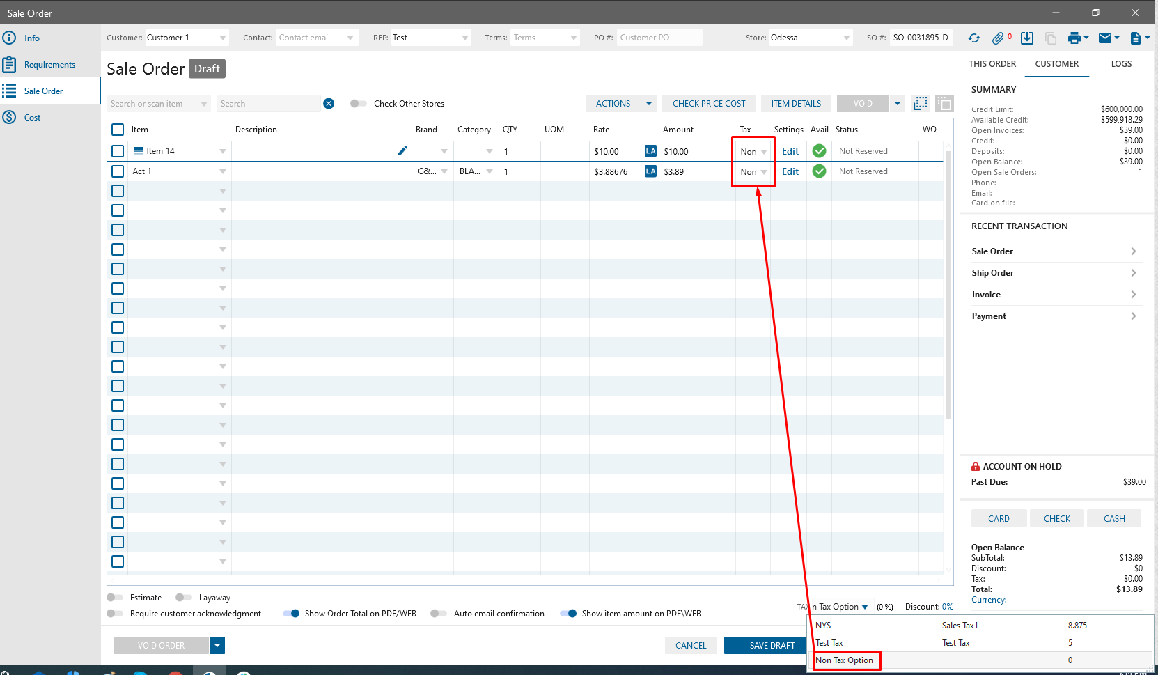 Added ability to apply “Non Tax Option” to all Items in SO/Invoice simultaneously