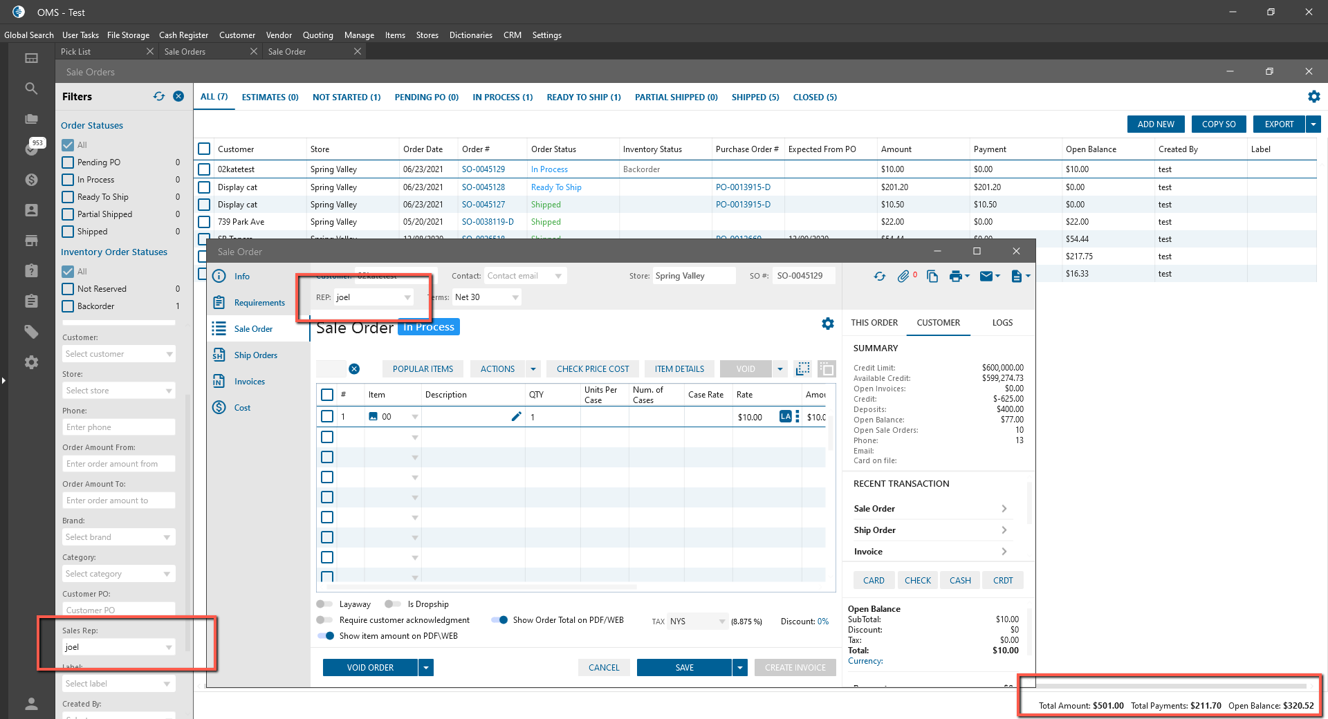 - Sales Orders are filtered by Sales Rep;