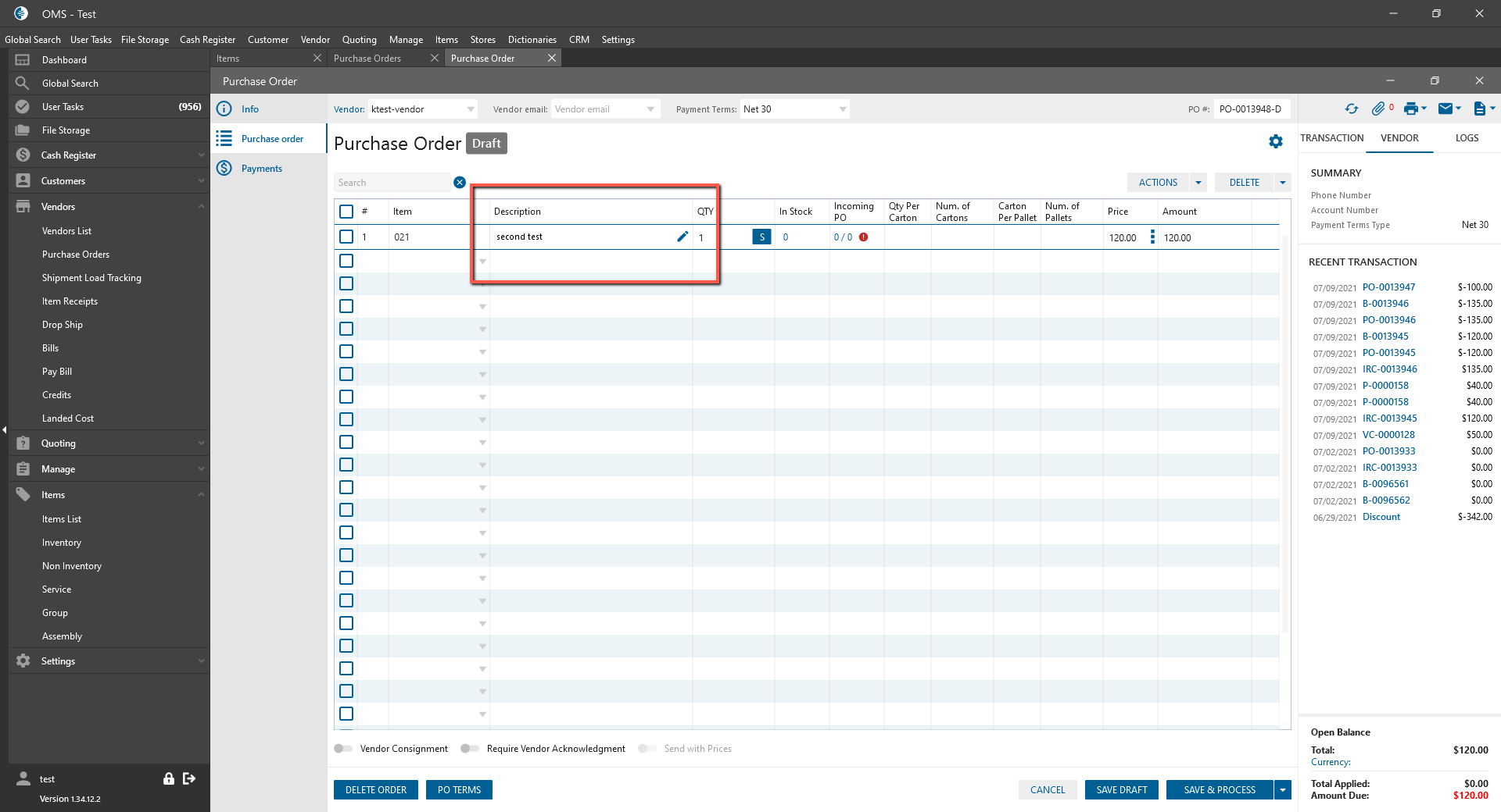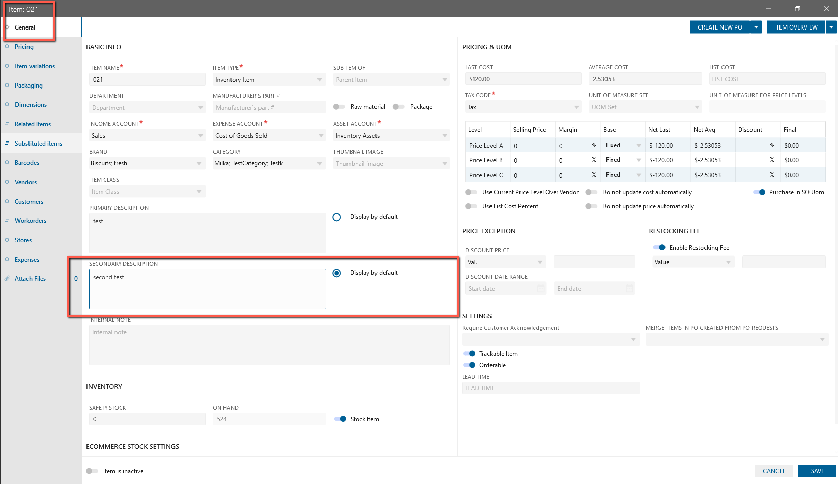 On Purchase Order is displayed Item Description which is selected by Default on the Item edit form.
